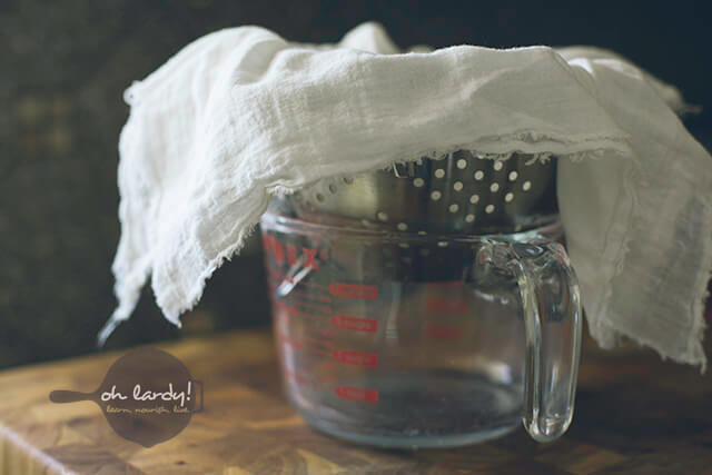 At this point strain your lard through a cheesecloth to catch all of the crackling bits.